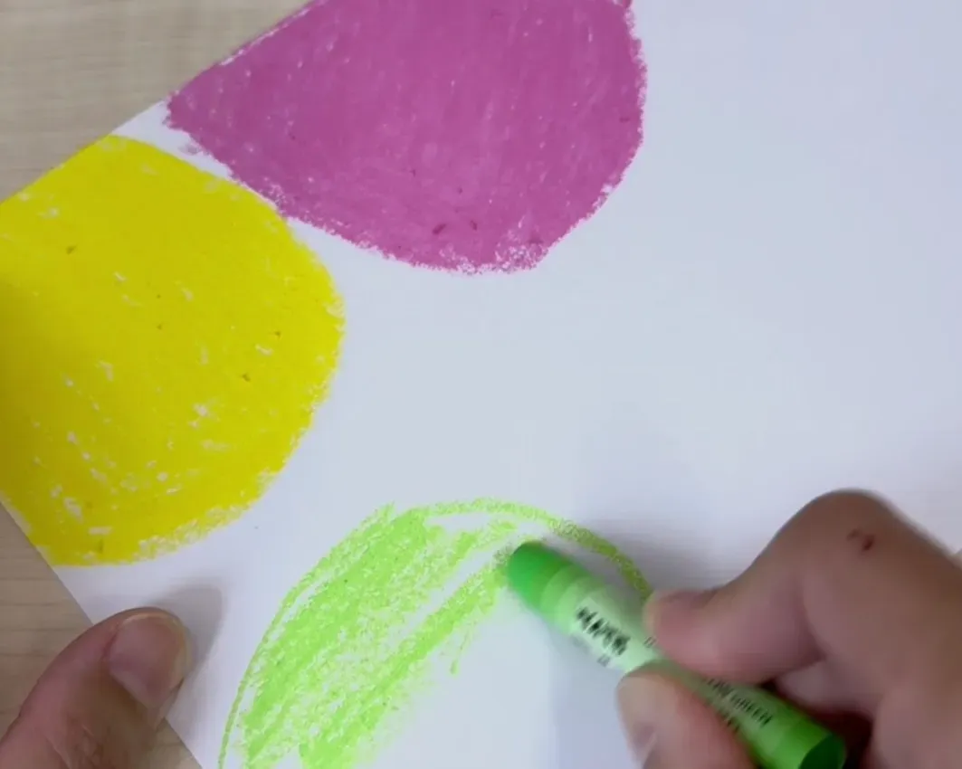 ①画用紙にクレヨンで丸を描き、中を塗りつぶす