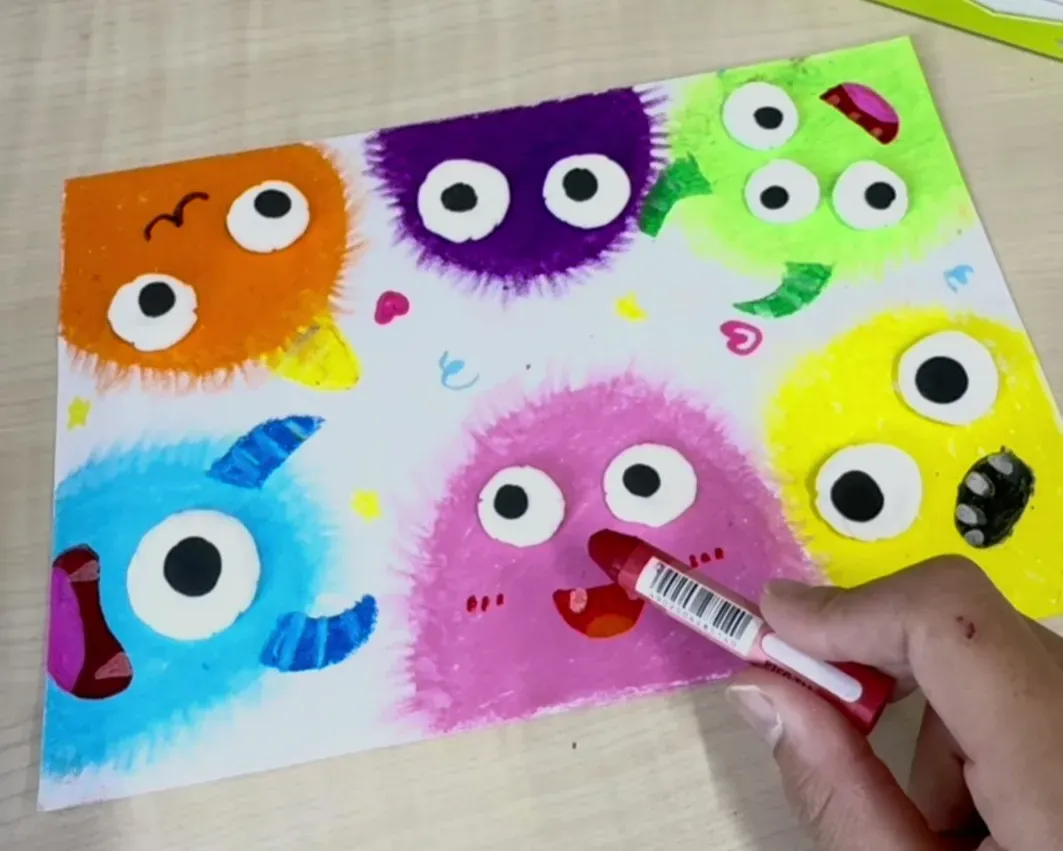 3歳児向けのモンスター製作のねらいは、クレヨンでお絵描きをしたり、綿棒で色をこすったりして、表現する楽しさを味わうことです。また、紙粘土を丸めたり、貼り付けたりする活動を通じて、手先の感覚を養います。