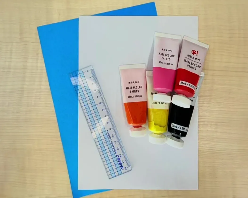 ①画用紙に好きな色の絵の具で模様を描く