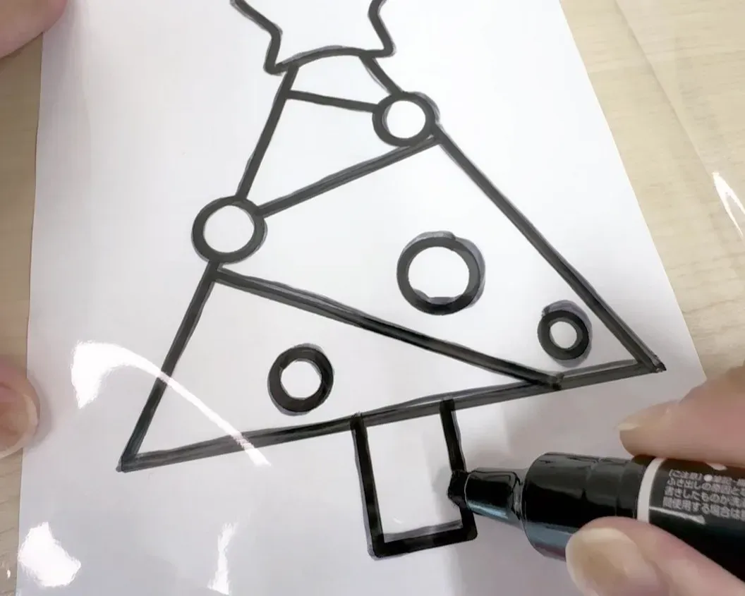 ➂クリアシートをひっくり返して、油性ペンで塗り絵の輪郭をなぞる