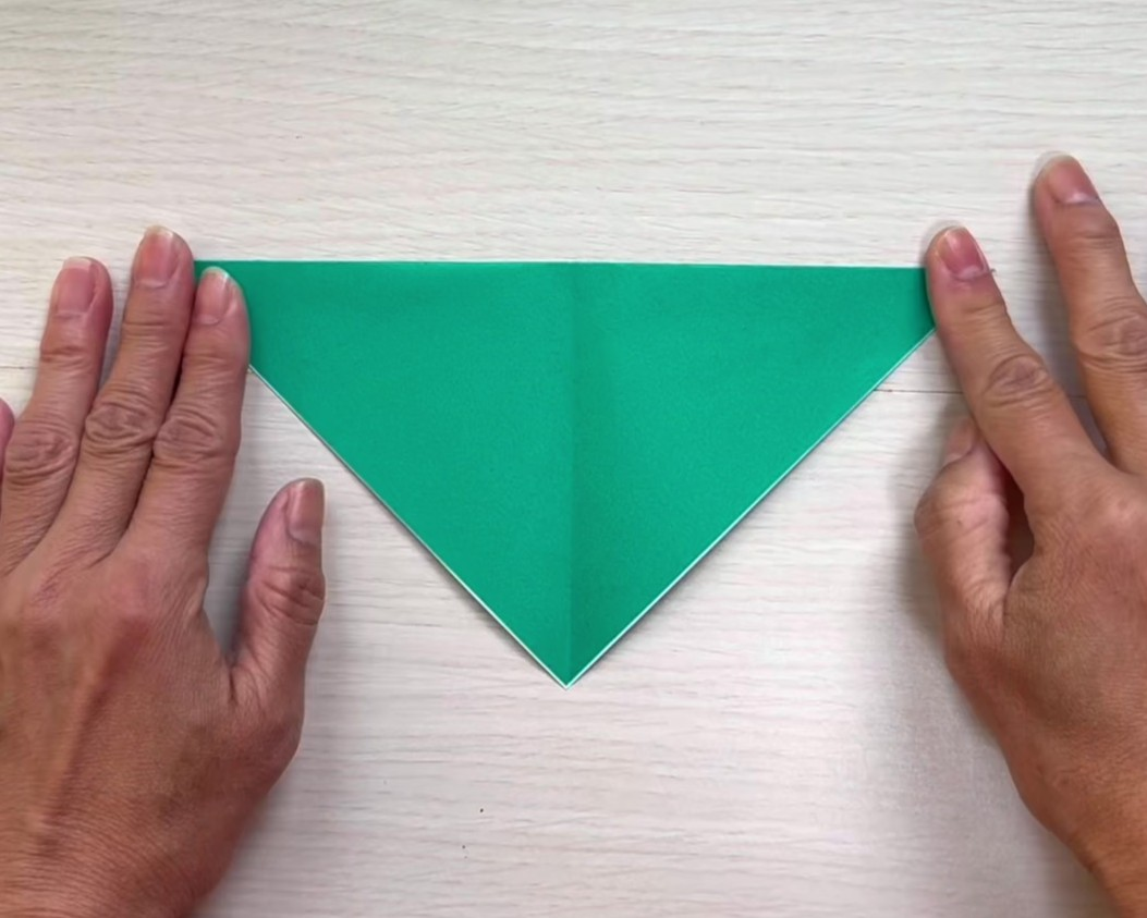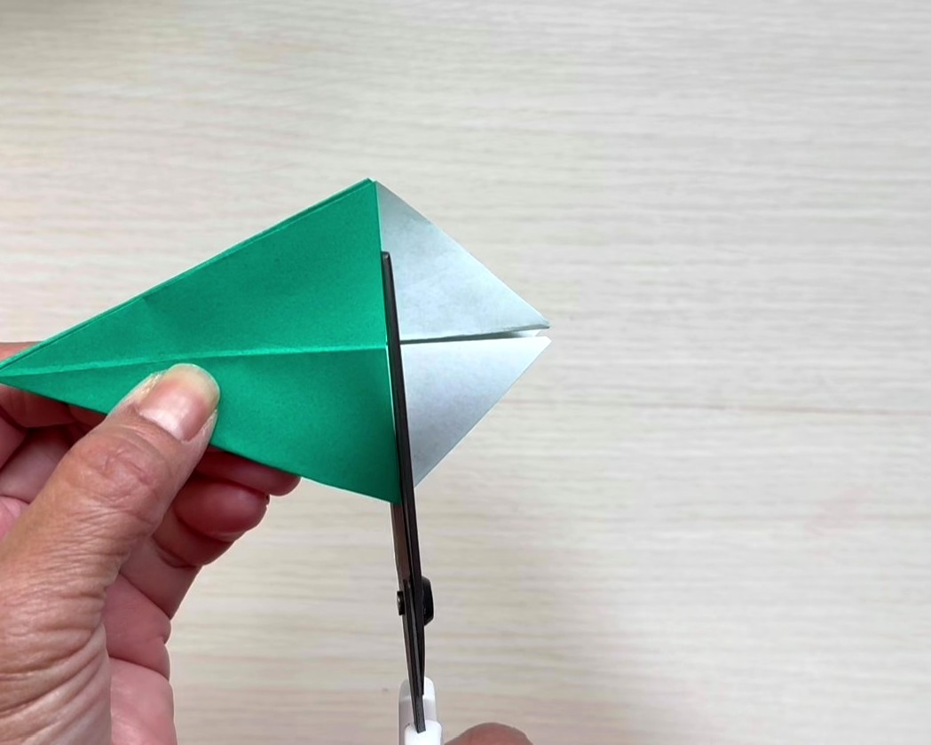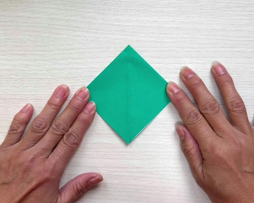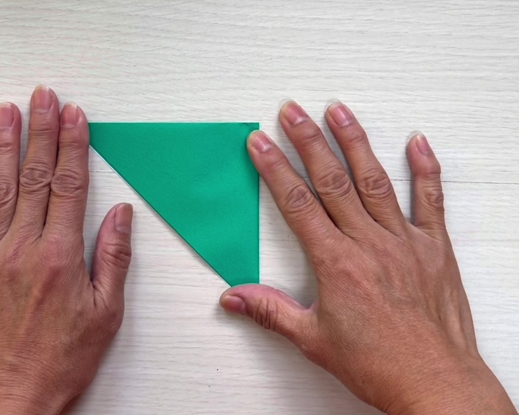 ①折り紙を三角に折る