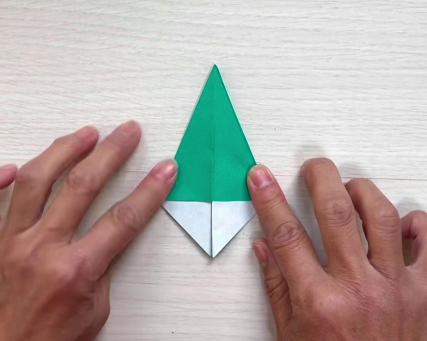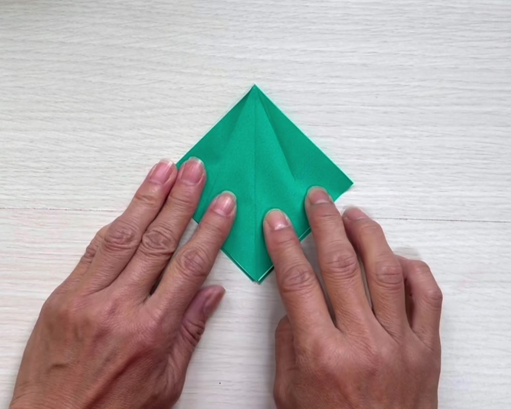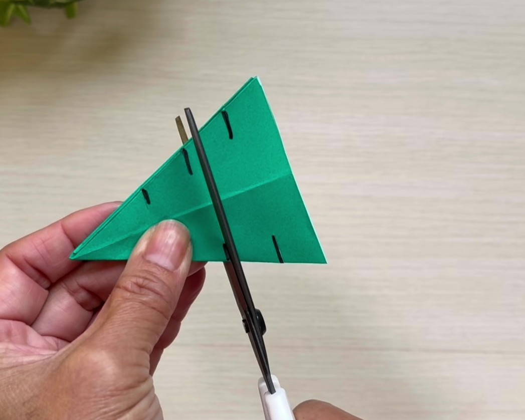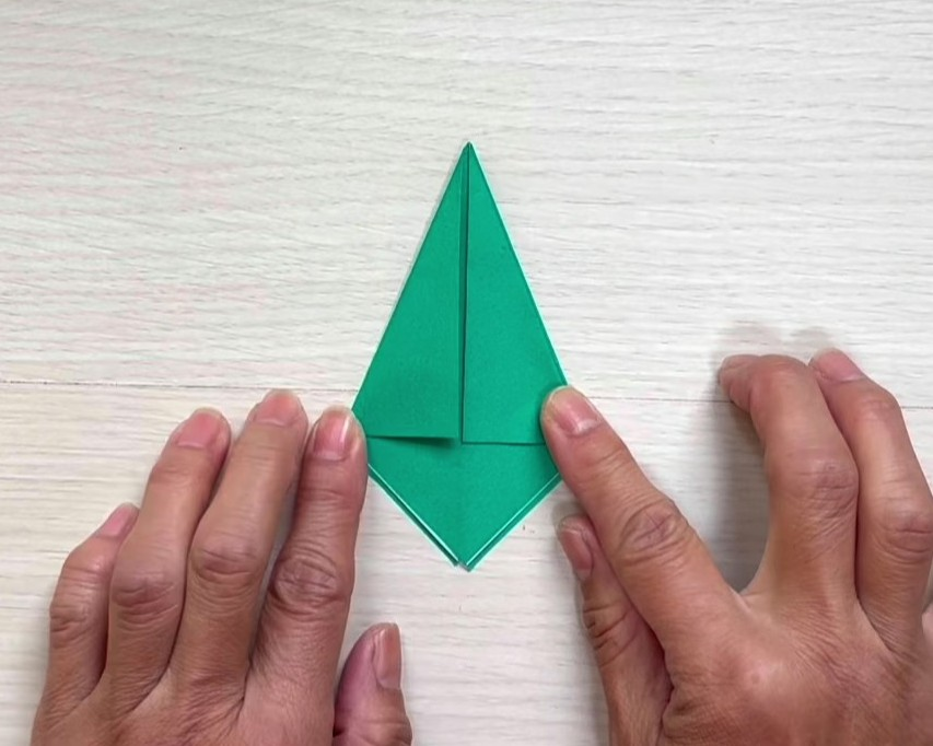 ①折り紙を三角に折る