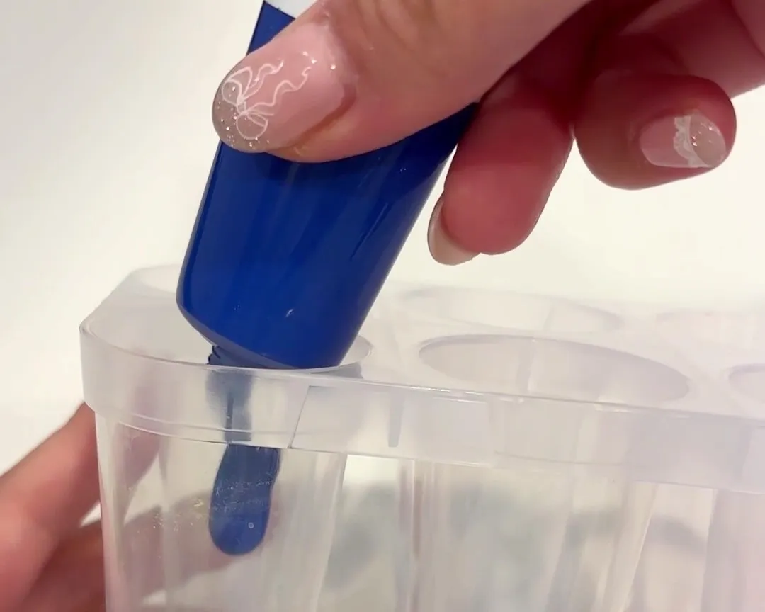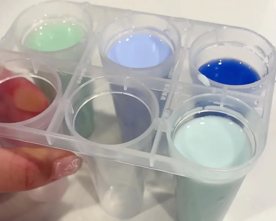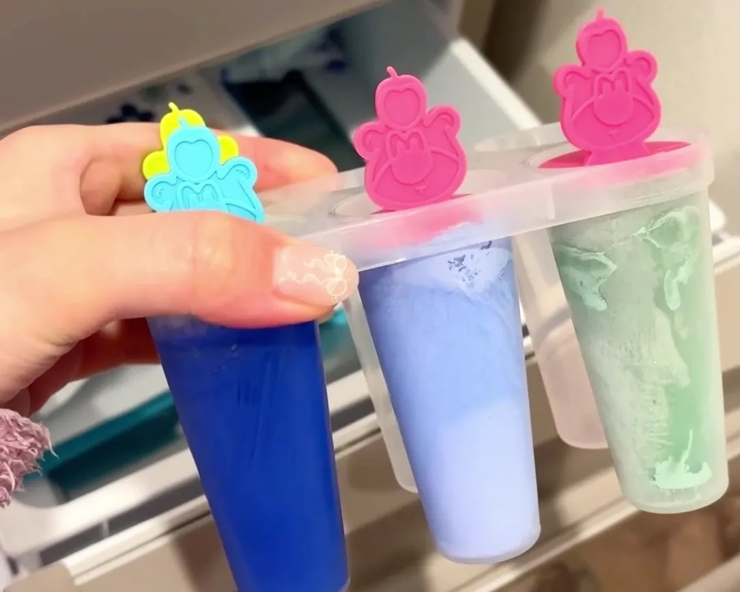 ①アイスキャンディーの型に絵の具を入れる